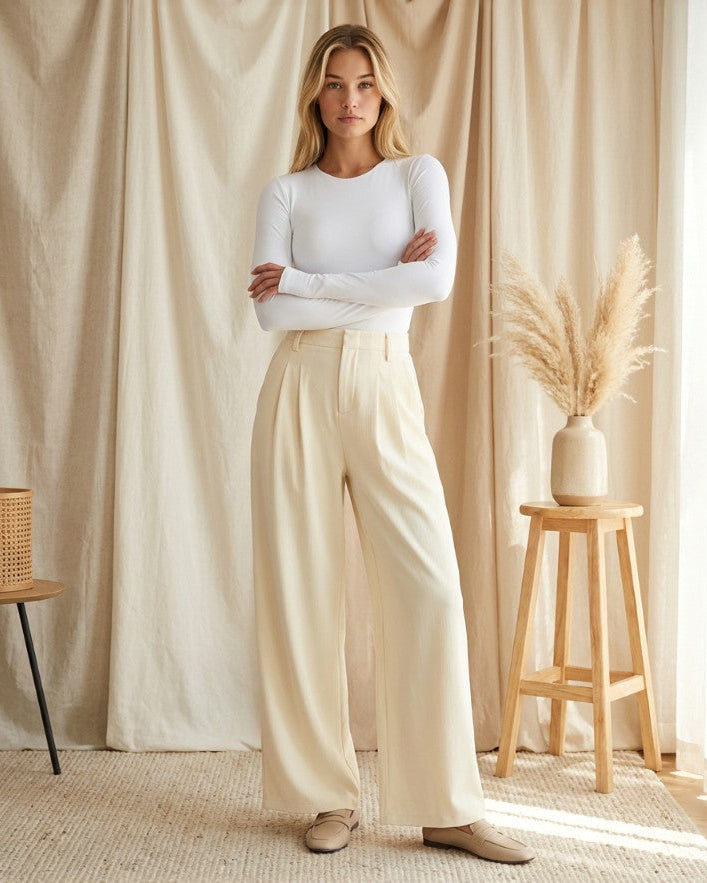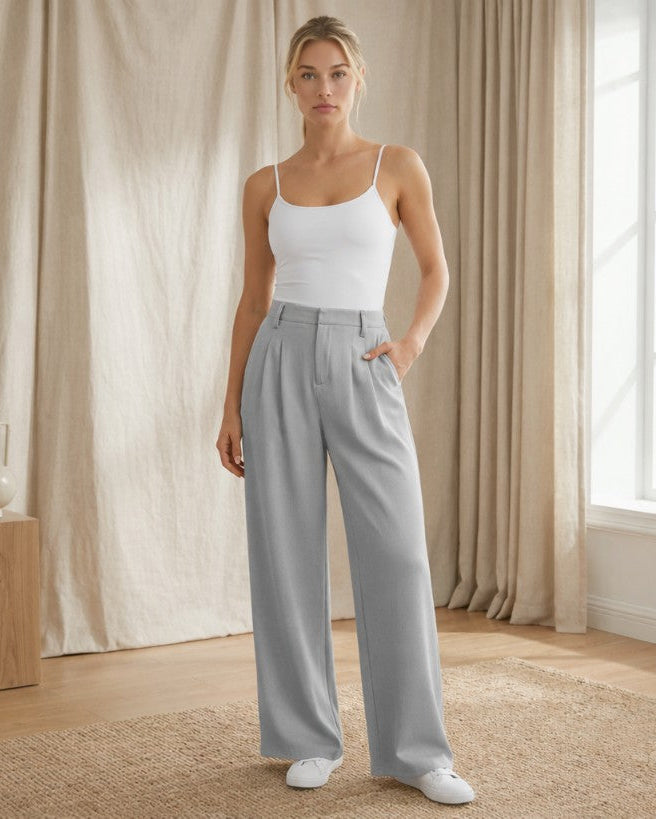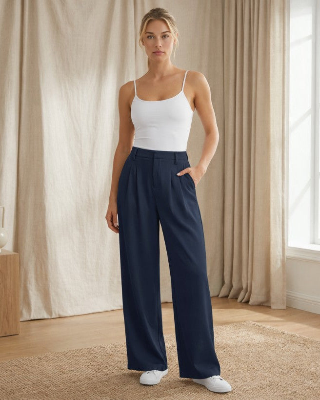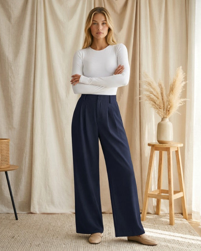 The Camille Relaxed Trouser is crafted for modern women who value comfort, versatility, and understated elegance. With its relaxed wide-leg silhouette and softly structured drape, it offers a refined yet effortless look for everyday wear.